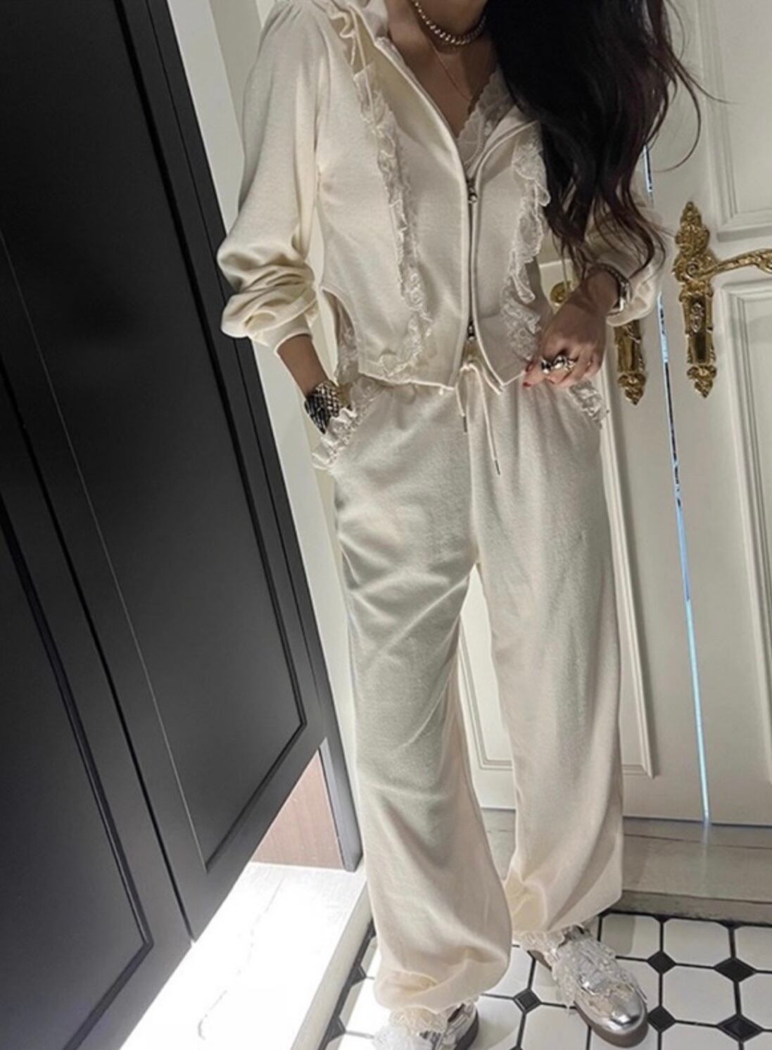 このレーススウェットセットアップは、カジュアルさと女性らしさを兼ね備えた魅力的なアイテムです。レースのディテールがスタイルに華やかさをプラスし、リラックスした着心地を実現。普段使いはもちろん、ちょっとしたお出かけやイベントにもぴったりです。動きやすいデザインで、さまざまなコーディネートに合わせやすい一品をぜひお届けします!