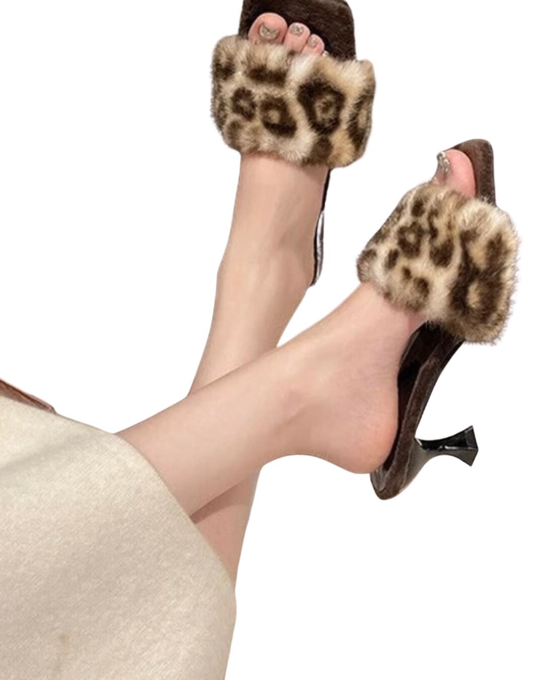 ふわふわのエコファーが華やかに映える、秋冬仕様のハイヒールサンダル。